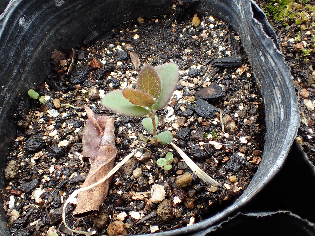 上の写真のハスカップは、種まきをした翌年の春の様子です。この後10cm~15cmほどに成長します。下の写真は2年目の苗(2025年5月28日撮影)です。1年で結構大きくなります。そして3年目はどんなに大きくなるかと期待していたら、鹿が食べちゃいました(泣)