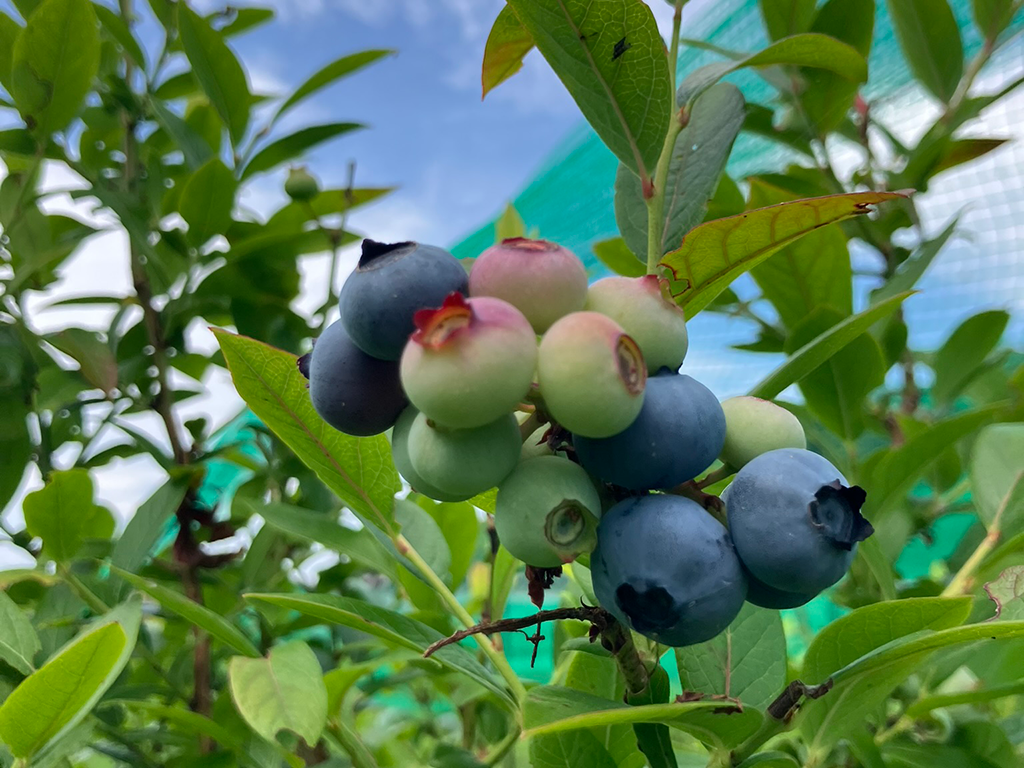 そして、心配していた薬害はみられず、第一陣のブルーベリーが色づき始めました。来週くらいから本格的に収穫できそうです。