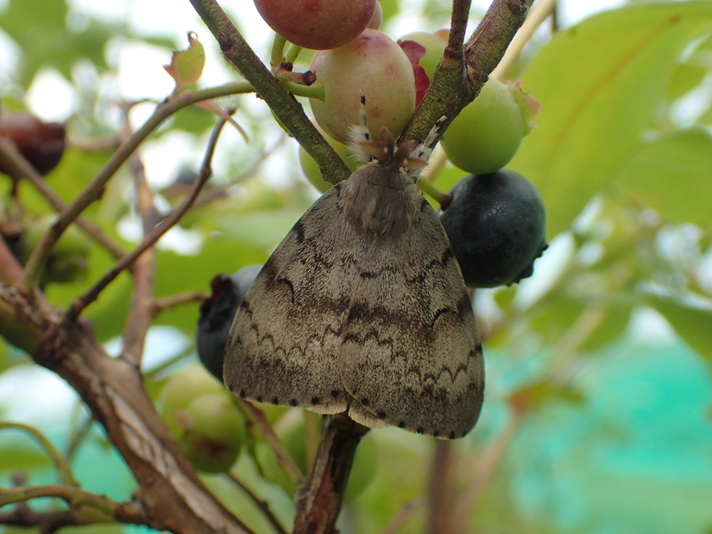 こちらは雄のマイマイガのようです。集団でいるととても嫌ですが、単独でいる場合はきれいな模様だと思ってしまいました。