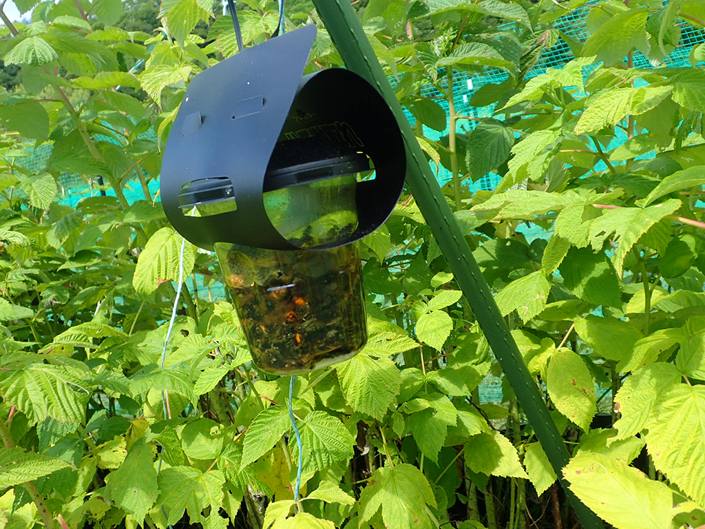 旦那様を攻撃したハチがトラップにかかったかどうかも確認できていませんが、寒くなるまで、ここには近寄らないことにしました。来年は春の早い時期で、かつ作業をしない場所に沢山トラップを仕掛けることにします。